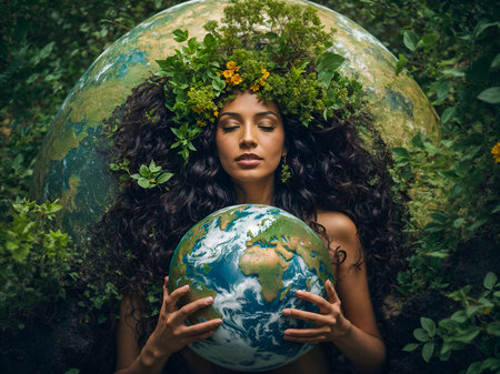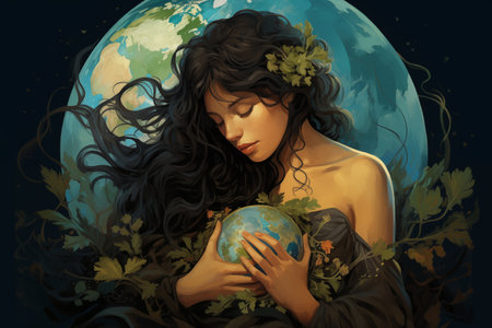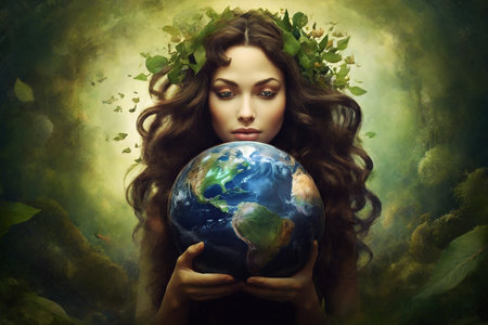 Fantasy Mother Nature Holding the Globe of Earth - Generative AI