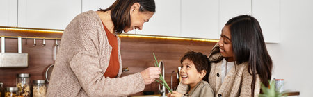 Multiethnic lesbian enjoys cooking in the kitchen. young lgbtq gay woman lover. LGBT lifestyle