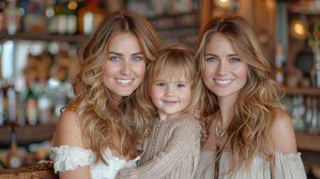 Two women share joyful moments with a baby in a warm, inviting space celebrating family togetherness.
