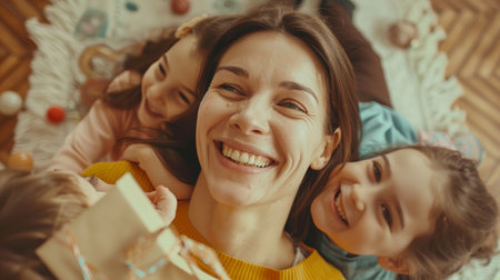 Mother and child are sharing a joyful moment, embracing each other with warm smiles, showing love and connection in a cozy environment.
