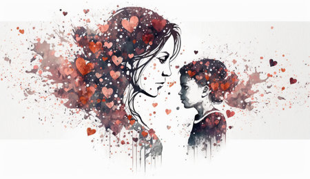 Illustration of mother with a baby, Mother's Day, Generative AI content