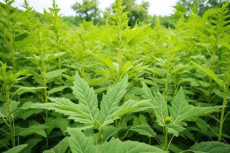 a patch of burdock plants with large leaves, created with generative ai