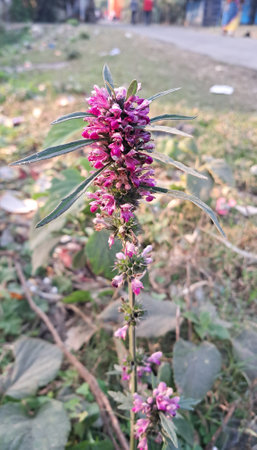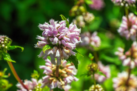 Leonurus cardiaca plant. Mother wort with pink flowers.