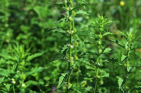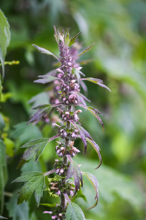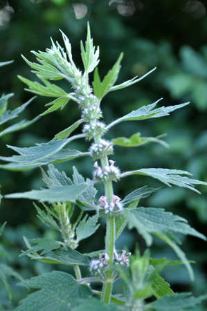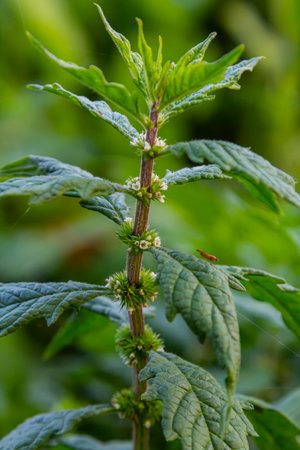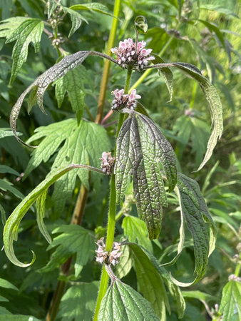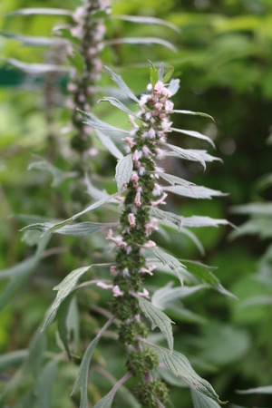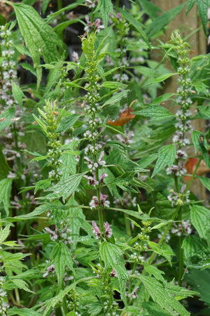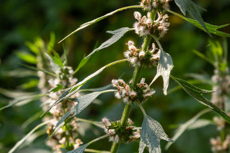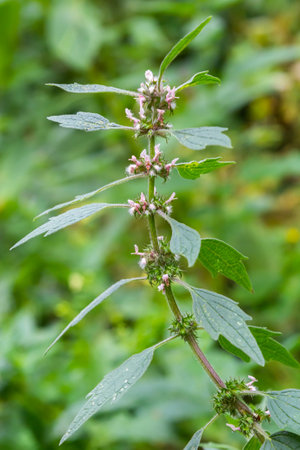 Leonurus cardiaca, motherwort, throw-wort, lion's ear, lion's tail medicinal plant with opposite leaves serrated margins Blooming in summer