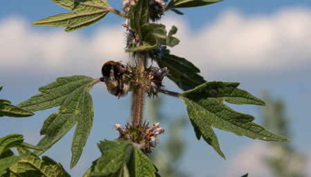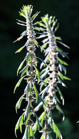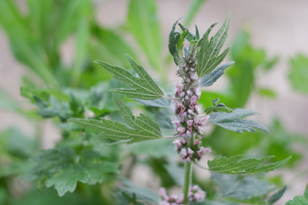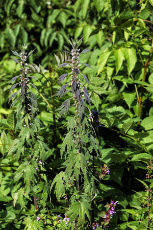 The Motherwort medical plant growing outdoors. Leonurus cardiac herb