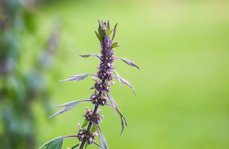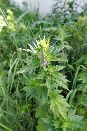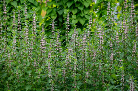 Medicinal plant leonurus cadriaca or motherwort growing in garden in summer