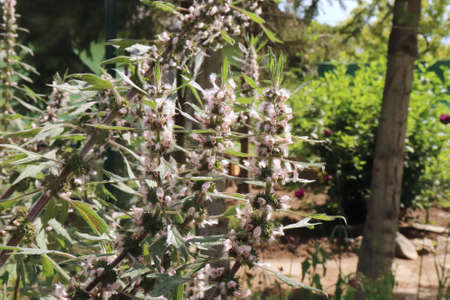 Leonurus cardiaca in an organic garden. Medicinal herb. Concept of healthy nutrition. Leonurus cardiaca. Nature concept.