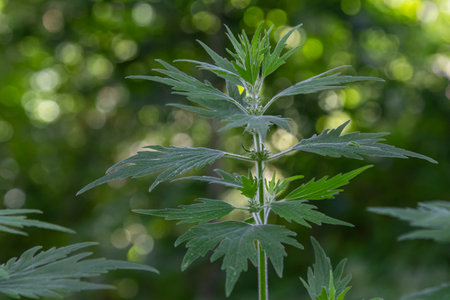 Nature's Bounty: Sunlit Stinging Nettle Leaves. Generative AI
