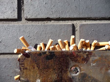 Fag ends on haze concrete background