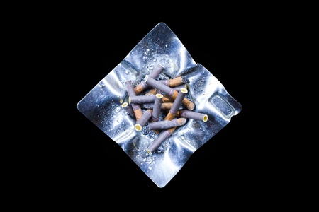 Cigarette butts in ashtray on black background.