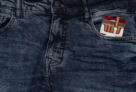 Closeup photo of cigarettes on a blue jeans background