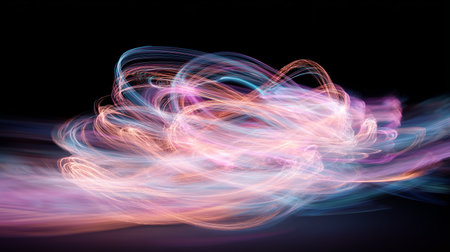 Capture the essence of motion with vibrant abstract light trails. This dynamic image features swirling colors and glowing lines that convey energy and creativity. Perfect for modern design projects.