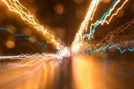 abstract light trails on the road at night, long exposure photo