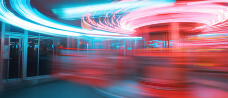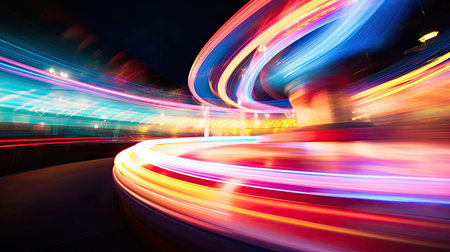 Experience the thrill of amusement park rides in vibrant blurred motion at night