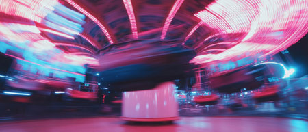 Vivid carousel in motion creates a playful blur of colors at night carnival