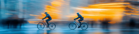 Cycling in the city. Urban cycling. Motion blurred people riding bicycles in the city