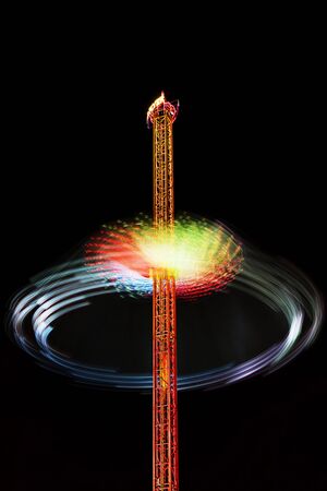 Exciting long exposure capture of vibrant amusement park rides in motion at night