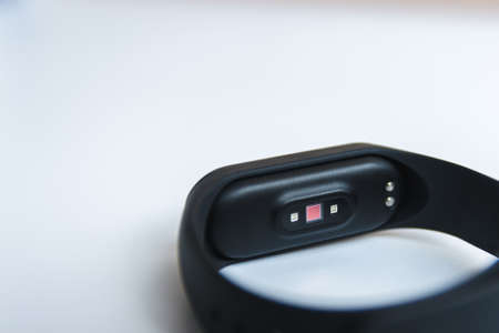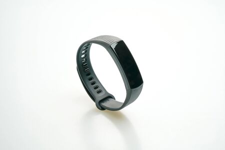 Digital fitness tracker smart band with touch screen isolated on white background. Stock Photo