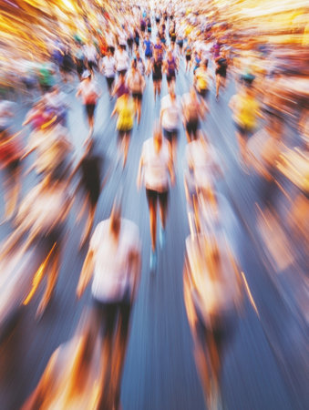 Runners participate in a charity marathon, showing their determination and spirit in a lively atmosphere with vibrant colors and motion blur.