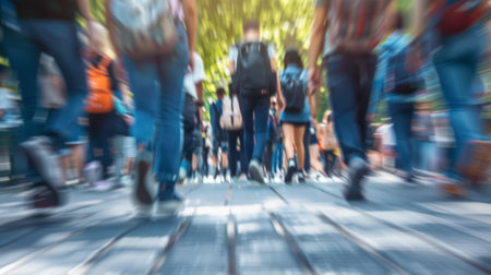 Students walking to class in a university or college environment. Moving crowd motion blurred background - ai