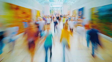 A vibrant visual representation of people moving through an art gallery, showcasing the dynamic energy and artistic expression found in modern exhibitions.