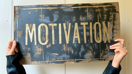 Motivation concept woman holding motivation sign on blurred background, success theme