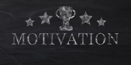 Chalk drawing of winner cup and word MOTIVATION written on blackboard, illustration. Panorama