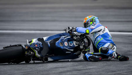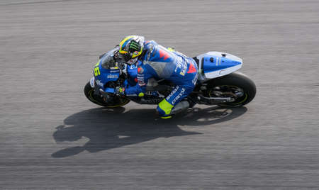 SEPANG, MALAYSIA - NOVEMBER 04, 2018 : Suzuki Ecstar's Italian rider Andrea Iannone in action during the MotoGP race of the Malaysian Motorcycle Grand Prix at Sepang Circuit.