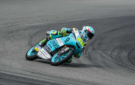 SEPANG, MALAYSIA - NOVEMBER 04, 2018 : Niccolo Antonelli of Italy and Sic 58 Squadra in action Moto3 race during the MotoGP Of Malaysia at Sepang CircuitÊ