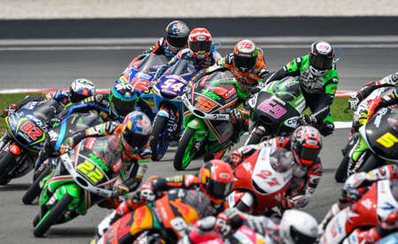 SEPANG, MALAYSIA - OCTOBER 21: Riders of 250cc race at Malaysian MotoGP 2011 Sepang International Circuit Malaysia on October 21, 2011 in Sepang, Malaysia.