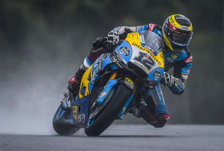 SEPANG, MALAYSIA - NOVEMBER 04, 2018 : EG 0,0 Marc VDS Italian rider Franco Morbidelli in action during the MotoGP race of the Malaysian Motorcycle Grand Prix at Sepang Circuit.