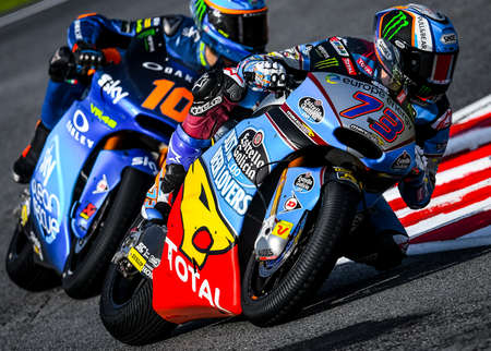 SEPANG, MALAYSIA - NOVEMBER 03, 2019 : Alex Marquez of Spain and Estrella Galicia 0,0 Marc VDS (73) during the Moto2 Malaysia Motorcycle Grand Prix (MotoGP) at Sepang International Circuit (SIC).