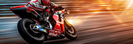 Super motorbike racing on the circuit track while driving at high speed and accelerating at full power AIG44