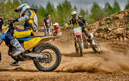 RAMENSKOYE, MOSCOW REGION, RUSSIA - OCTOBER 5: Riders in action during competition motocross in Ramenskoye on October 5, 2013.
