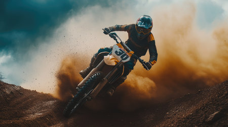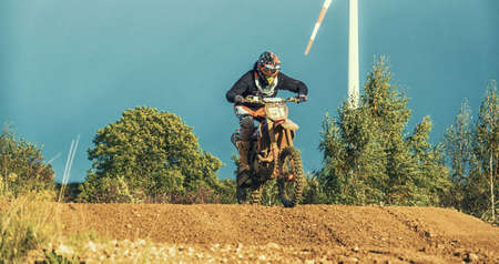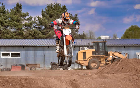 Dirtbike. Athlete bikers is go motocross. Concept active rest moto extreme dirt bike.