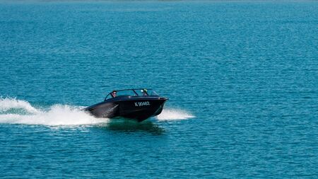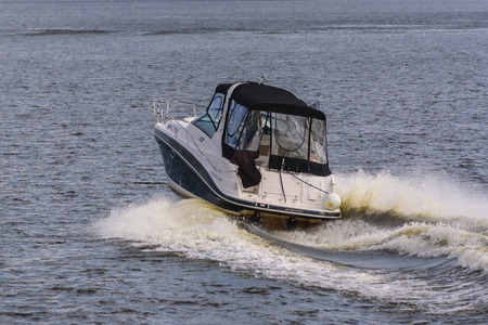 Kalvehave Denmark - May 5. 2018: Power boat sailing by full power