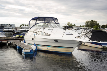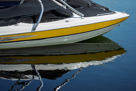 Detail of a small motor boat. Horizontal outdoor natural light shot