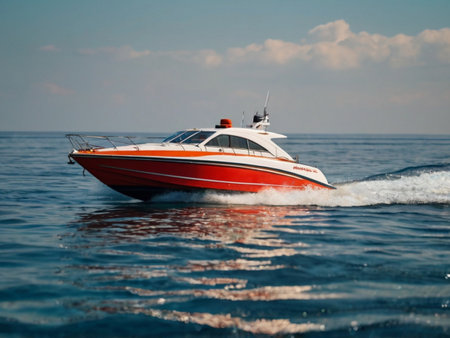 A yacht is navigating through the tranquil waters of a sea on a sunny day. AI-generated.