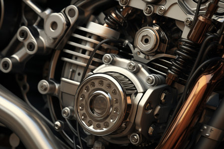 Metallic shiny motorcycle parts and motor parts. Biker movement concept