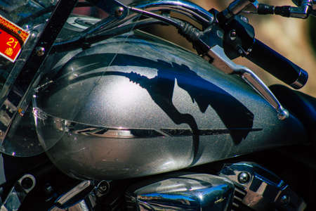 Limassol Cyprus May 21, 2020 Closeup of a motorcycle parked in the streets of Limassol in Cyprus island