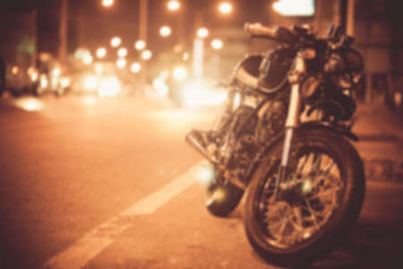 Parked motorcycle in the night city
