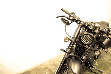 vintage Motorcycle detail on the road,vintage tone
