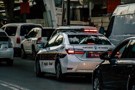 Tel Aviv January 01, 2020 View of a Israeli police car in the streets of Tel Aviv in the afternoon