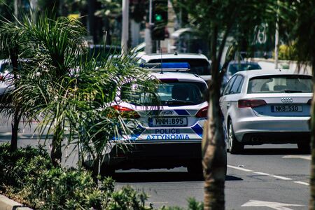 Limassol Cyprus May 21, 2020 View of a traditional Cypriot police car rolling in the streets of Limassol inCyprus island