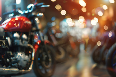 Cropped image of new motorcycle in shop. Motorcycles and accessories in modern motorcycle custom store. Biker stuff