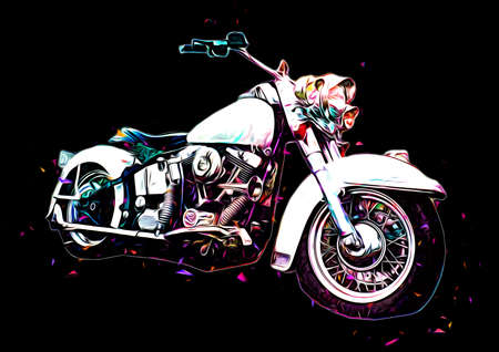 Freedom.Motorcycle parking, front view. Stylish custom chopper motobike with chrome details. Soft selective focus.