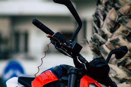 Limassol Cyprus May 21, 2020 Closeup of a motorcycle parked in the streets of Limassol in Cyprus island