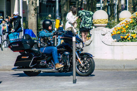 Reims France April 1, 2021 People rolling with a motorcycle in the streets of Reims during the coronavirus outbreak hitting France