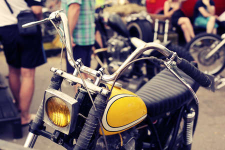 STOCKHOLM, SWEDEN - SEPT 02, 2017: Closeup of retro motorcycles wheels of retro MC at the Mods vs Rockers event at the Saint Eriks bridge, Stockholm, Sweden, September 02, 2017