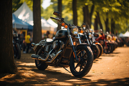 Motorcycles aligned in a vibrant meeting of enthusiasts, generative AI